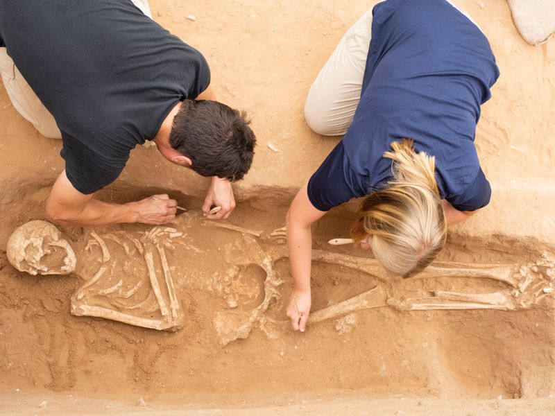 Hài cốt được tìm thấy tại khu nghĩa trang Philistines ở Ashkelon, Israel. Ảnh: Melissa Aja.