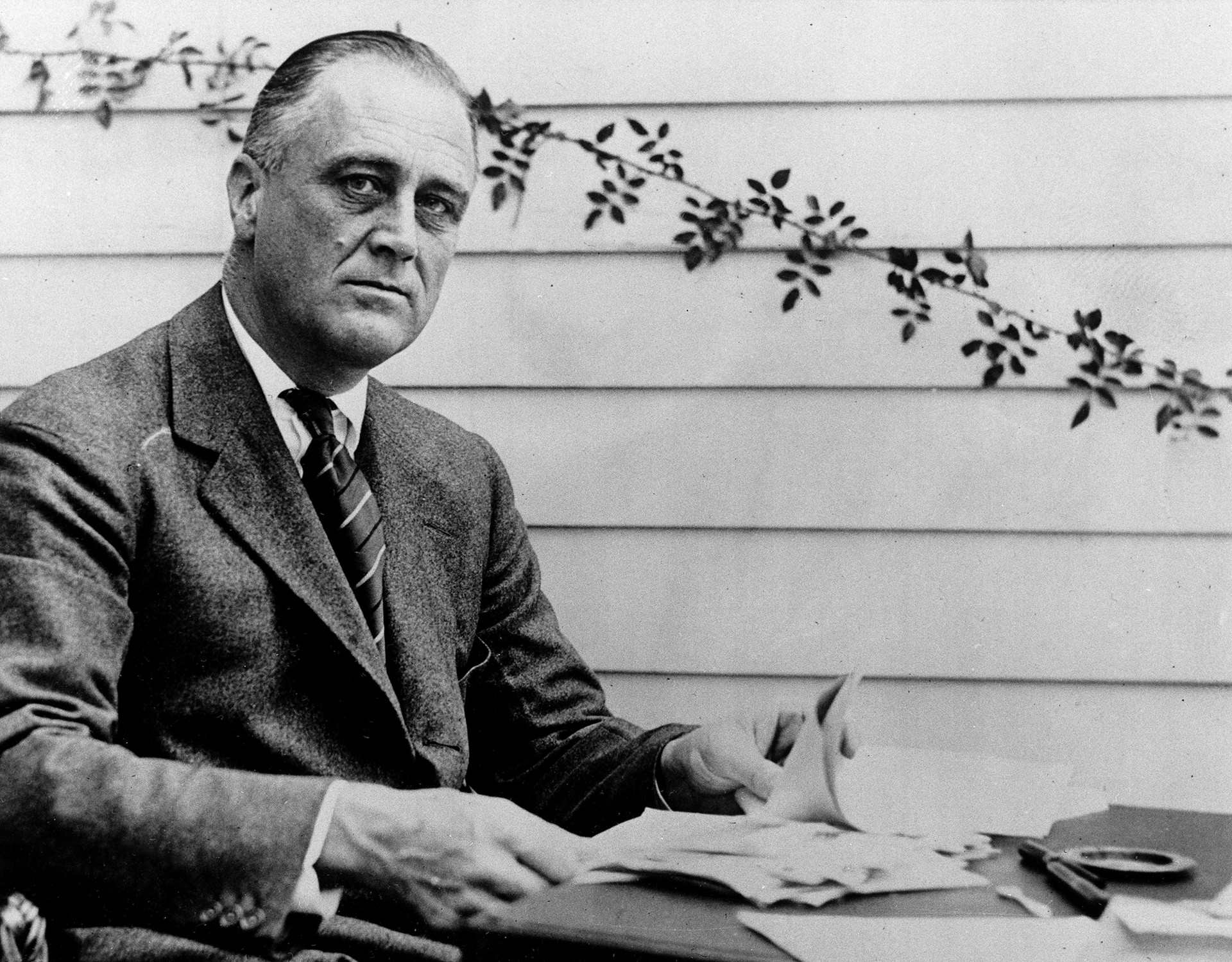 Franklin D. Roosevelt khi vừa chấp nhận được đề cử thượng nghị sĩ ở New York tại ngôi nhà mùa hè của ông ở Warm Springs, Ga., Ngày 4 tháng 10 năm 1928.