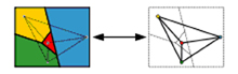 ![]() Hình 3 .Tương đương giữa các vùng trên một bản đồ và đồ hình trong bài toán 4 màu. |