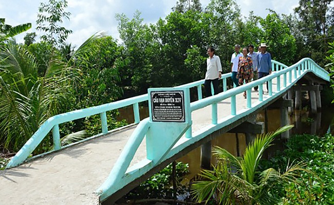 TS Phạm Khánh Nam đã thiết kế thí nghiệm để người dân tự nguyện đóng góp xây dựng cầu ở ĐBSCL. Kết quả cho thấy mức độ hợp tác của nông dân Việt Nam rất cao và thay đổi khá lớn nếu dự án được thiết kế dựa trên cơ chế hợp tác: cung cấp thông tin về mức độ hợp tác của người khác. Ảnh: Cây cầu do người dân tự thiết kế, xây dựng tại Sóc Trăng. Nguồn: Tiền phong.