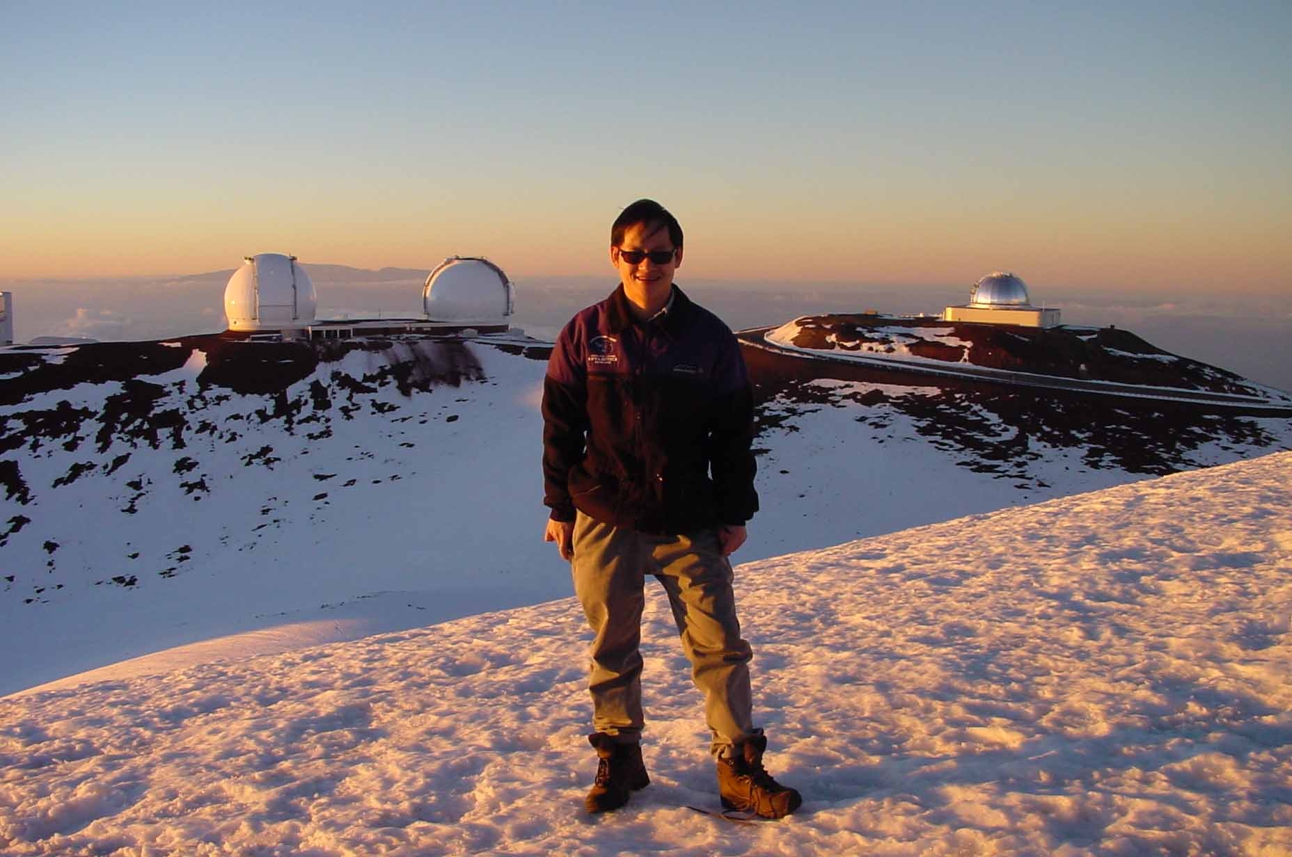 Tác giả, Nguyễn Trọng Hiền, trong ngày Giáng sinh trắng 2001 tại Mauna Kea. Nguyễn Trọng Hiền tham gia quan sát và chế tạo các thiết bị vi ba tại CSO, khởi đầu là Bolocam (1999) và hiện nay là thành viên của nhóm Z-Spec.