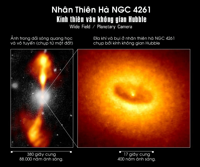 Đây là những dữ kiện nhà thiên văn Trần Đình Hiển thu được từ đài thiên văn không gian Hubble dựa trên số liệu từ Keck. Phần cốt lõi của ngân hà NGC 4261, cho thấy vòng khoanh bụi và khí bao phủ quanh lỗ đen tại trung tâm, đúng như đã tiên đoán bởi Trần Đình Hiển và các đồng nghiệp.