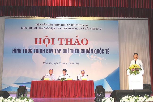 Thời gian qua, nhiều đơn vị đã tổ chức các hội thảo bàn về việc xây dựng tạp chí KHXH&NV theo chuẩn quốc tế. Ảnh: Hội thảo “Hình thức trình bày tạp chí theo chuẩn quốc tế” do Liên chi hội nhà báo Viện Hàn lâm KHXH Việt Nam tổ chức. Trong ảnh: PGS.TS. Phạm Minh Phúc, Phó Trưởng ban Ban Tổ chức – Cán bộ trình bày báo cáo quy định mới về cấp, đổi thẻ Nhà báo. Nguồn: vass.gov.vn.