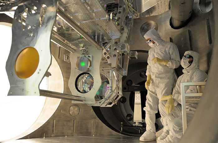 Cài đặt máy dò phiên bản cao cấp LIGO (Advance LIGO) có độ nhạy gấp 10 lần so với phiên bản LIGO cơ bản (Initial LIGO). Nguồn ảnh: Caltech/MIT/LIGO Lab.