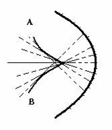 Hình 5. Một mặt tụ quang AB thuộc tai biến nếp gấp lùi |