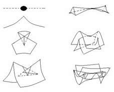 Dùng định lý Hook có thể viết được thế năng V của đĩa. Tập các điểm tới hạn của V, tại đó đạo hàm của V theo x bằng không cho ta trạng thái cân bằng của đĩa. Các điểm này nằm trên một mặt cong K có dạng nếp nhăn của một miếng vải. Chiếu K xuống mặt phẳng a, b ta có tai biến nếp gấp lùi (tai biến thứ hai bên trái ở hình 3).
