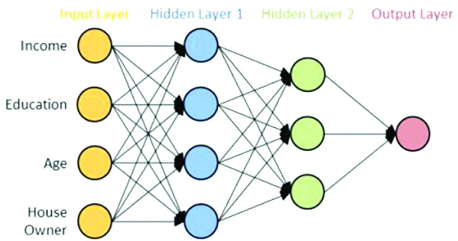 Một ví dụ sơ đồ đơn giản hóa về “neural network”: các nút tròn là “neuron” (mỗi nút ứng với một tham số), các mũi tên là các “axon”.