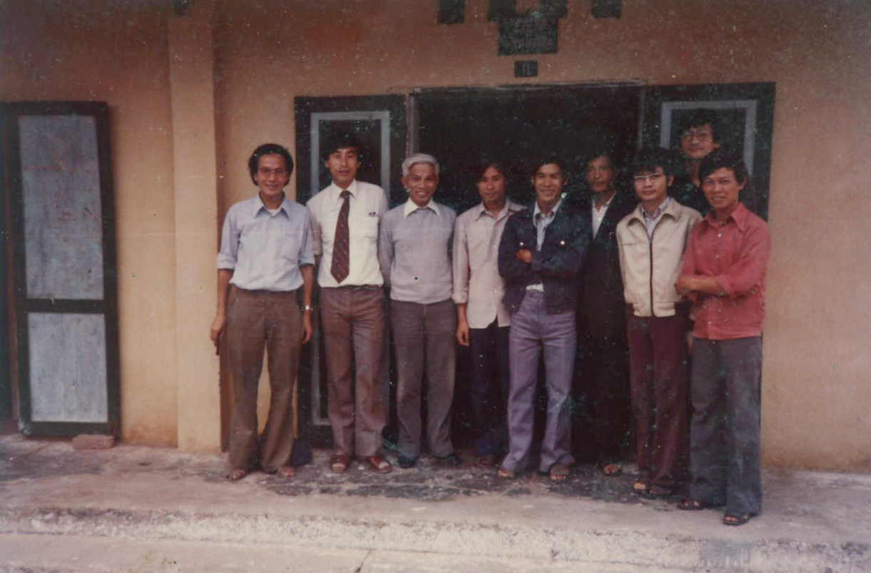 Phòng Tô pô – Hình học và khách tại cơ sở Đội Cấn-Ba Đình, năm 1981. Từ phải: Nguyễn Sỹ Minh, Lê Dũng Tráng, Ngô Việt Trung, Lê Văn Thành, Nguyễn Hữu Đức, Hà Huy Vui, Hoàng Tụy, Kyoji Saito, Huỳnh Mùi (ĐH Tổng hợp Hà Nội).