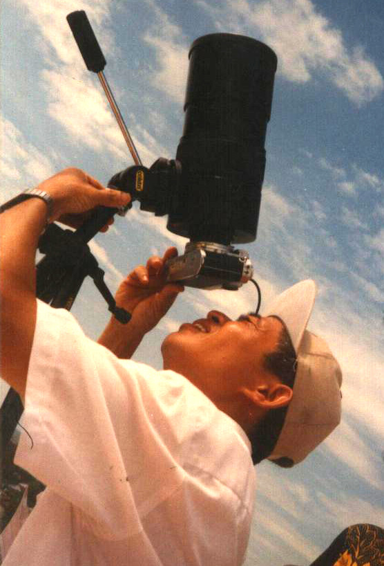 Nhà thiên văn Phan Văn Đồng chụp ảnh nhật thực toàn phần tại Phan Thiết. |