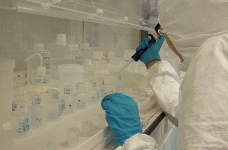Quá trình xử lý các hóa chất để phân tách boron khỏi foram và đo đạc hợp chất đồng vị của nó tại Phòng thí nghiệm Địa hóa trường đại học Southampton. Nguồn: ĐH Southampton