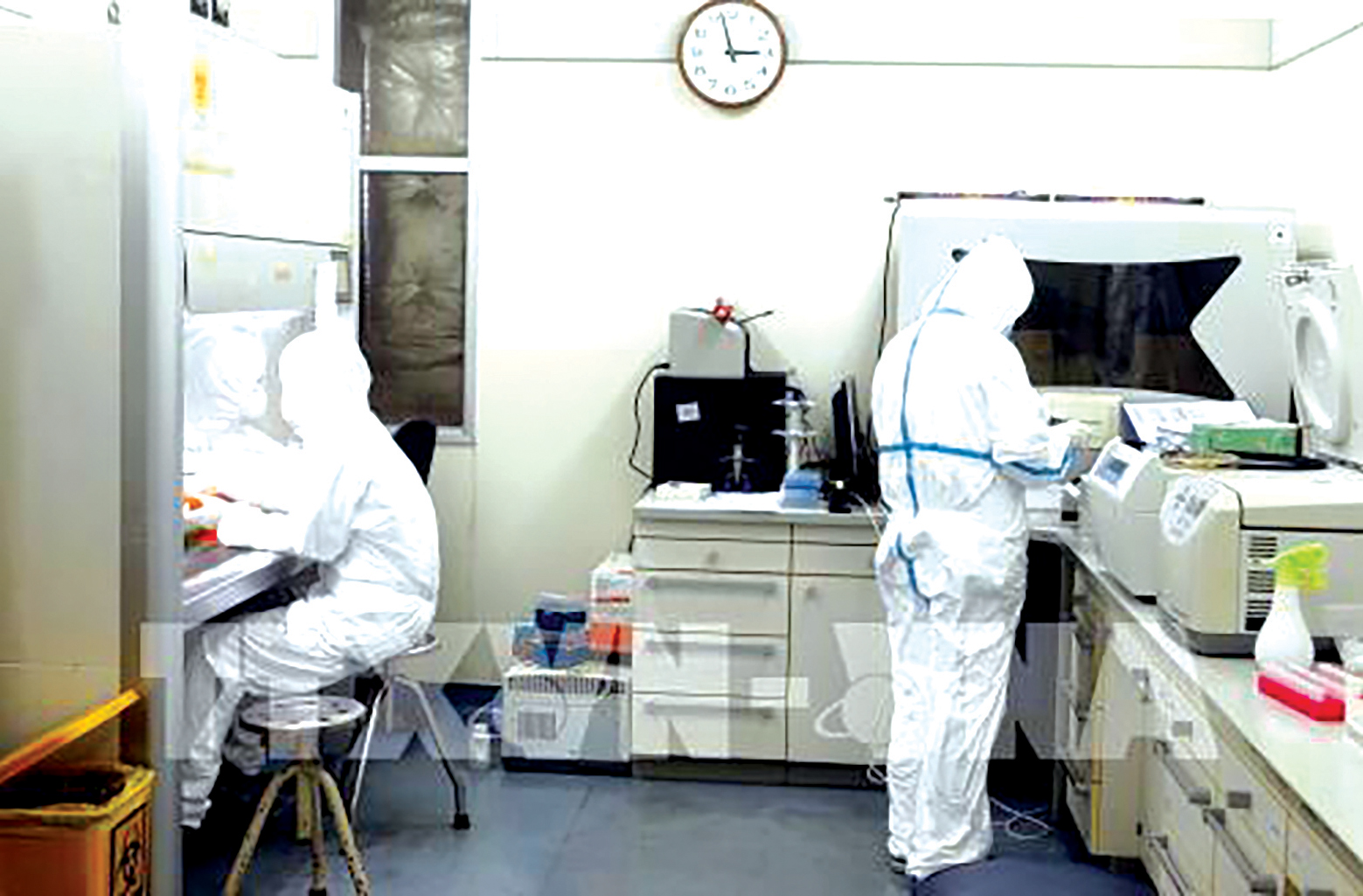Các nhà nghiên cứu Viện Vệ sinh dịch tễ Trung ương xét nghiệm các mẫu bệnh phẩm nhiễm và nghi nhiễm COVID – 19 bằng kỹ thuật RT-PCR. Ảnh: Dương Ngọc/TTXVN.