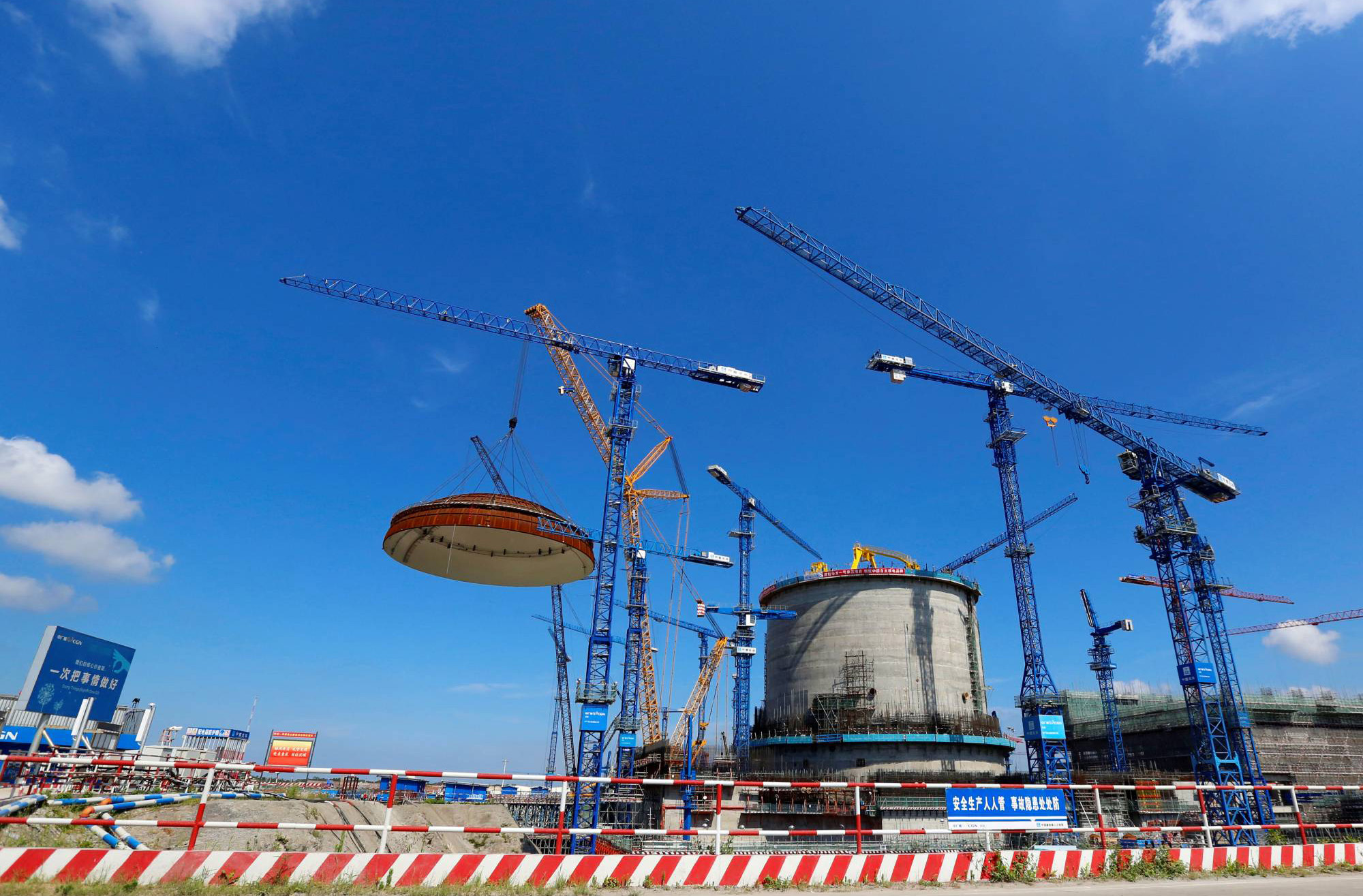 Các công nhân xây dựng tại nhà máy điện hạt nhân Xương Giang trên đảo Hải Nam, Trung Quốc. Ảnh chụp năm 2015. Nguồn: AP