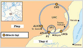 Một tập thể khoa học trên thế giới đã khởi động một thiết bị siêu đại chưa từng có trong lịch sử vật lý: máy LHC sau chín năm xây dựng. Trên hình 1 ta có sơ đồ và vị trí của LHC (gần biên giới Pháp-Thụy Sĩ). Đây là một máy gia tốc có cấu trúc hướng hai chùm hadron (hadron là các hạt nặng) va chạm nhau ở vùng năng lượng tera ( TeV = tera electron-volt= 10 12 eV). Máy LHC sẽ thực hiện một cuộc cách mạng trong vật lý tương lai.
