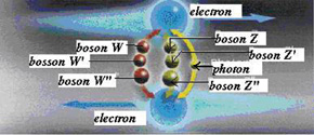 | Hình 4. Hạt Higgs không tồn tại thay vì vào đó xuất hiện những boson Z’ , Z” …(ngoài boson Z ) và các boson W’, W”…(ngoài boson W). |