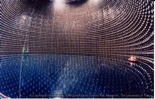 Các nhà thiên văn-vật lý dò tìm neutrino vũ trụ đến từ các sao siêu mới và đặc biệt từ mặt trời rồi xác định cùng đo lường khối lượng của chúng, điều cực kỳ khó khăn ví von như tìm kim cương trong sa mạc. Mặc dầu có vô hạn neutrino trong hoàn vũ (riêng mặt trời phóng ra đã vài chục tỷ neutrino từng giây đang xuyên qua mỗi cm2 da thịt chúng ta) thế mà chỉ có thể phát hiện được vài chục hạt để đo lường tính chất vật lý của chúng. Ở Kamiokande (Nhật) máy dò chứa 50 ngàn m3 nước trong vắt đặt dưới hầm mỏ kẽm (Hình 3), ở Homestake (Mỹ) trong hầm mỏ vàng, ở Baksan (Nga) trong rặng núi Caucasus, ở Sudbury (Canada) nằm sâu trong mỏ thiếc.