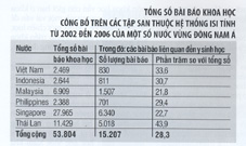 Tuy nhiên, khi so sánh tổng số bài báo khoa học với các nước trong vùng như Thái Lan, Singapore, Indonesia, Malaysia, và Philippines, thì số lượng ấn phẩm của ta chỉ cao hơn Philippines, nhưng thấp hơn so với các nước khác (Xem chi tiết Bảng 1). Chẳng hạn như trong cùng thời gian, Singapore công bố được 27.956 bài (cao hơn Việt Nam 11 lần) và Thái Lan 11.429 bài (cao hơn Việt Nam 4,6 lần). Ấn phẩm khoa học của Malaysia cũng cao hơn Việt Nam gấp 2,8 lần (6.909 so với 2.469 bài).
