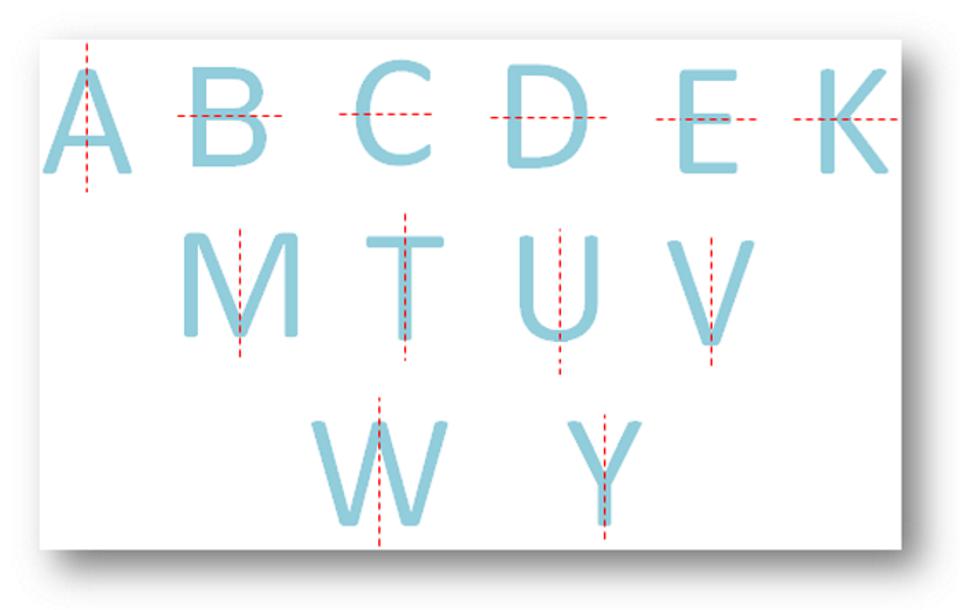Hình 3: Trong bảng chữ cái có nhiều chữ cái thể hiện các đối xứng cụ thể khác nhau. Lưu ý rằng các chữ cái in hoa trên hình này đều có một và chỉ một trục đối xứng, theo hướng dọc với các chữ cái A, M, T, U, V, W và Y hoặc theo hướng nằm ngang với các chữ cái B, C, D, E và K; trong khi đó các chữ cái khác như “I” hoặc “O” có nhiều hơn một trục đối xứng. Đối xứng ‘gương’ như này, được gọi là đối xứng chẵn lẻ hay đối xứng P (ngụ ý chữ Parity), đã được xác minh là tồn tại trong mọi thử nghiệm đối với ba loại tương tác là tương tác mạnh, tương tác điện từ và tương tác hấp dẫn. Tuy nhiên, đối xứng P lại có thể bị vi phạm trong tương tác yếu. Khám phá khẳng định sự vi phạm đối xứng này xứng đáng giải Nobel Vật lý năm 1957.