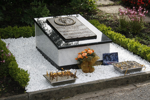 Bia tưởng niệm Mileva Marić tại nghĩa trang Zurich Nordheim, Thụy Sĩ, nằm cách mộ của bà 150 m. Bia trên mộ của bà đã bị quản trang gỡ bỏ vì không ai trả phí nghĩa trang cho Mileva. Nguồn: teslasociety.ch