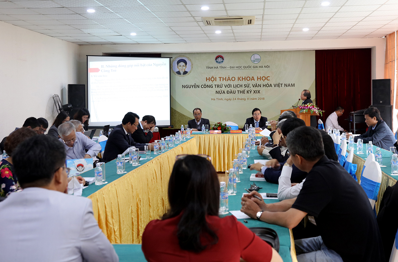 Nguyễn Công Trứ là nhân vật được nghiên cứu phân tích rất nhiều. Trong ảnh: Hội thảo Nguyễn Công Trứ với lịch sử, văn hóa Việt Nam nửa đầu thế kỷ XIX, do ĐHQG HN và tỉnh Hà Tĩnh tổ chức ngày 24/11/2018. Ảnh: VNU.