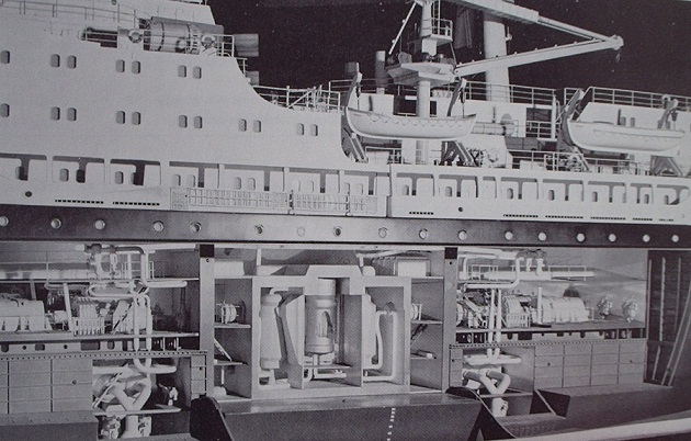 Hình 3: Tàu phá băng mang tên Lenin được thiết kế và xây dựng trong các năm 1957 đến 1959, có 3 lò PWR công suất 90 MWt, ký hiệu OK-150.