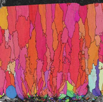 Sáu mươi triệu nguyên tử đã được phát hiện trong một cây kim làm từ hợp kim nhôm bằng cách sử dụng kính hiển vi điện tử chụp cắt lớp. Mỗi dấu chấm trong hình ảnh biểu thị cho một nguyên tử: màu xanh dương cho nhôm, magiê màu hồng, màu đỏ đồng và màu xanh lá cây cho kẽm. Các khối màu sắc hiển thị các tinh thể khác nhau hình thành bên trong vật liệu này.