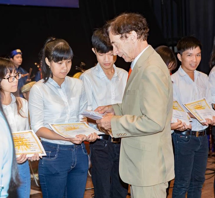 GS Odon Vallet trao học bổng của Quỹ Odon Vallet. Ảnh: Trang tin về quỹ học bổng Vallet.