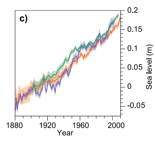 Bằng cách kết hợp các nguồn dữ liệu mực nước đo tại trạm thủy triều, từ vệ tinh và các quan sát khác với các phân tích tinh vi, các nhà khoa học đã tái xây dựng nhiều bản đồ mực nước trung bình của Trái đất. Các thảo luận do Ủy ban Liên chính phủ về Biến đổi khí hậu (IPCC) chủ trì đã đưa đến một đánh giá tương đối thống nhất và toàn diện. Theo đó, trong báo cáo đánh giá khoa học mới nhất (AR5) của IPCC, mực nước biển toàn cầu đã dâng lên hơn 20 cm từ thời kỳ cách mạng công nghiệp lần thứ nhất cho đến nay (Hình 1).