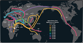 Trước năm 2000, tuy đã có thông tin ban đầu về con đường phía Bắc, nhưng giới khoa học cho rằng, khoảng 60.000 năm trước, người hiện đại từ châu Phi tới Ấn Độ và Đông Nam Á theo con đường phía Nam, men theo bờ Ấn Độ Dương (làn sóng rời khỏi châu Phi lần thứ nhất). Và từ vùng Sunda, họ đi tiếp tới Úc, lên Đông và Đông Bắc Á, tới Siberia rồi sang Bắc Mỹ. Đó là lí do Chu ưu ái Đông Nam Á hay Cavalli-Sforza bác bỏ khả năng đi qua Trung Á. Ngày nay ta biết rằng, con đường phía Bắc, từ châu Phi sang Trung Đông rồi lên Trung Á (khoảng vùng Bắc Afghanistan và lân cận) mới là đường thiên di chủ yếu. Đây là làn sóng rời khỏi châu Phi lần thứ hai. Hơn 90% số nam giới ngoài châu Phi hiện nay là hậu duệ của những người từng thám hiểm con đường này khoảng 40.000 năm trước. Chính xác hơn, họ là con cháu của người đàn ông mang dấu gene M9 trong ADN nhiễm sắc thể Y thuộc nhóm người từng thiên di tới Trung Á đó. Đó là chàng Adam Á – Âu. Con đường phía