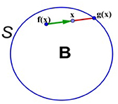 1/ Không có phép biến đổi nào biến B thành S và vẫn giữ nguyên mọi điểm trên S. (Ý chứng minh: Giả sử tồn tại một phép biến đổi như thế. Trước phép biến đổi, S là biên của B, sau phép biến đổi S phải là biên của chính S. Điều này vô lý.)