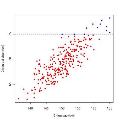 Nhưng tỉ lệ 46% (chiều dài của chân trên chiều cao) chỉ là tỉ lệ trung bình, và tỉ lệ này dao động giữa các cá nhân trong một quần thể, chứ không phải bất biến. Thật vậy, Biểu đồ 1 trên đây cho thấy mối liên hệ giữa chiều cao và chiều dài chân không phải là một mối liên hệ xác định tuyệt đối, tức không phải lúc nào chiều dài của chân bằng chiều cao nhân cho 0,46. Hai người có cùng chiều cao (chẳng hạn như 150 cm), nhưng một người có thể có chiều dài của chân là 65 cm và người kia là 75 cm. Điều này có ý nghĩa rất quan trọng trong thực tế: không thể căn cứ vào chiều cao mà xác định chiều dài của chân cho một cá nhân.