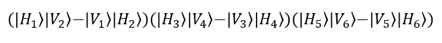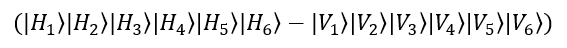 là trạng thái phân cực ngang (dọc). Sau đó, photon 1 được lần lượt kết hợp với photon 3 và photon 5 trên các bộ tách chùm phân cực (ký hiệu là PBS). Thời gian truyền của các photon được điều chỉnh sao cho chúng đến các PBS cùng một lúc. Khi một và chỉ một photon xuất hiện ở mỗi đầu ra thì 6 photon đã được rối với nhau trong một trạng thái rối đa hạt kiểu Greenberger–Horne–Zeilinger [3] có dạng