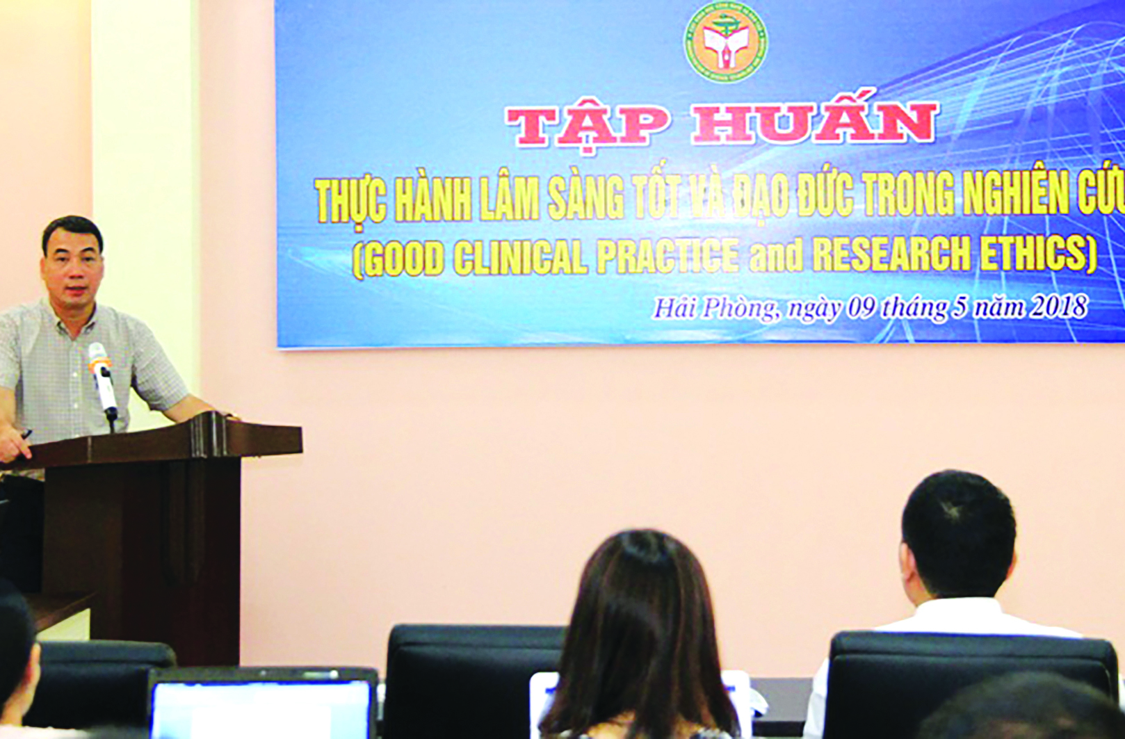 Ngành y đi tiên phong trong việc xây dựng các quy định và yêu cầu các trường phải thành lập hội đồng đạo đức. Ảnh: Trường Đại học Y Dược Hải Phòng phối hợp với Cục Khoa học công nghệ, Bộ Y tế tổ chức khóa Tập huấn về thực hành lâm sàng tốt và đạo đức trong nghiên cứu ngày 09/5/2018. Nguồn: http://hpmu.edu.vn.