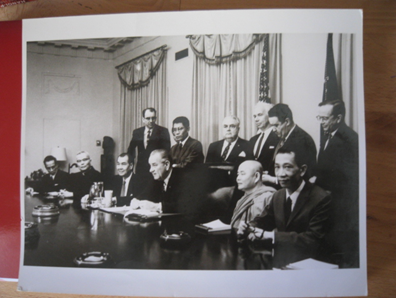 Viện trưởng các Viện Đại học miền Nam Việt Nam gặp gỡ Tổng thống Hoa Kỳ Lyndon Johnson năm 1967. Trong hình, hàng ngồi, từ trái qua phải: Ông Bùi Xuân Bào, GS Ban Pháp Văn (ĐH Văn Khoa Sài Gòn), Linh mục Nguyễn Văn Lập, Viện trưởng Viện ĐH Đà Lạt, Bác sĩ Trần Quang Đệ, Viện trưởng Viện ĐH Sài Gòn, Ông Lyndon Johnson, Tổng Thống Hoa kỳ, Thượng tọa Thích Minh Châu, Viện trưởng Viện ĐH Vạn Hạnh, Ông Bùi Diễm, Đại sứ VNCH tại Washington. GS Nguyễn Thế Anh, Viện trưởng Viện ĐH Huế là người trẻ nhất, đeo kính, đứng ngay sau Tổng thống Hoa Kỳ.