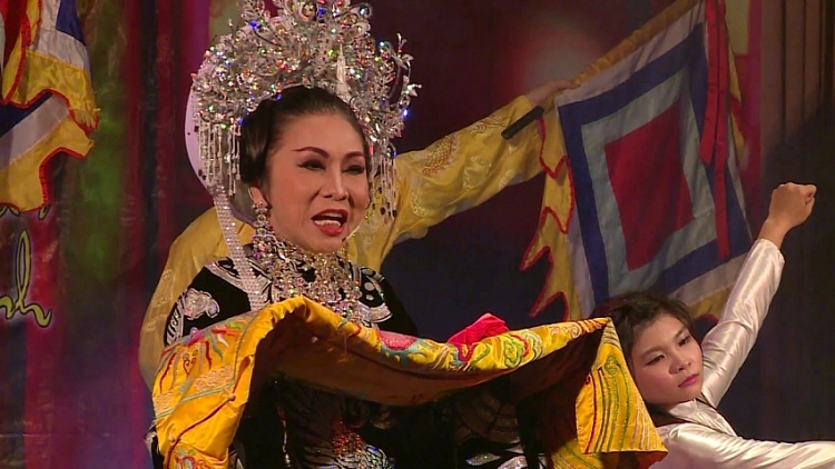 Nghệ sĩ Bạch Tuyết trong vai diễn Thái hậu Dương Vân Nga trong vở kịch cùng tên.
