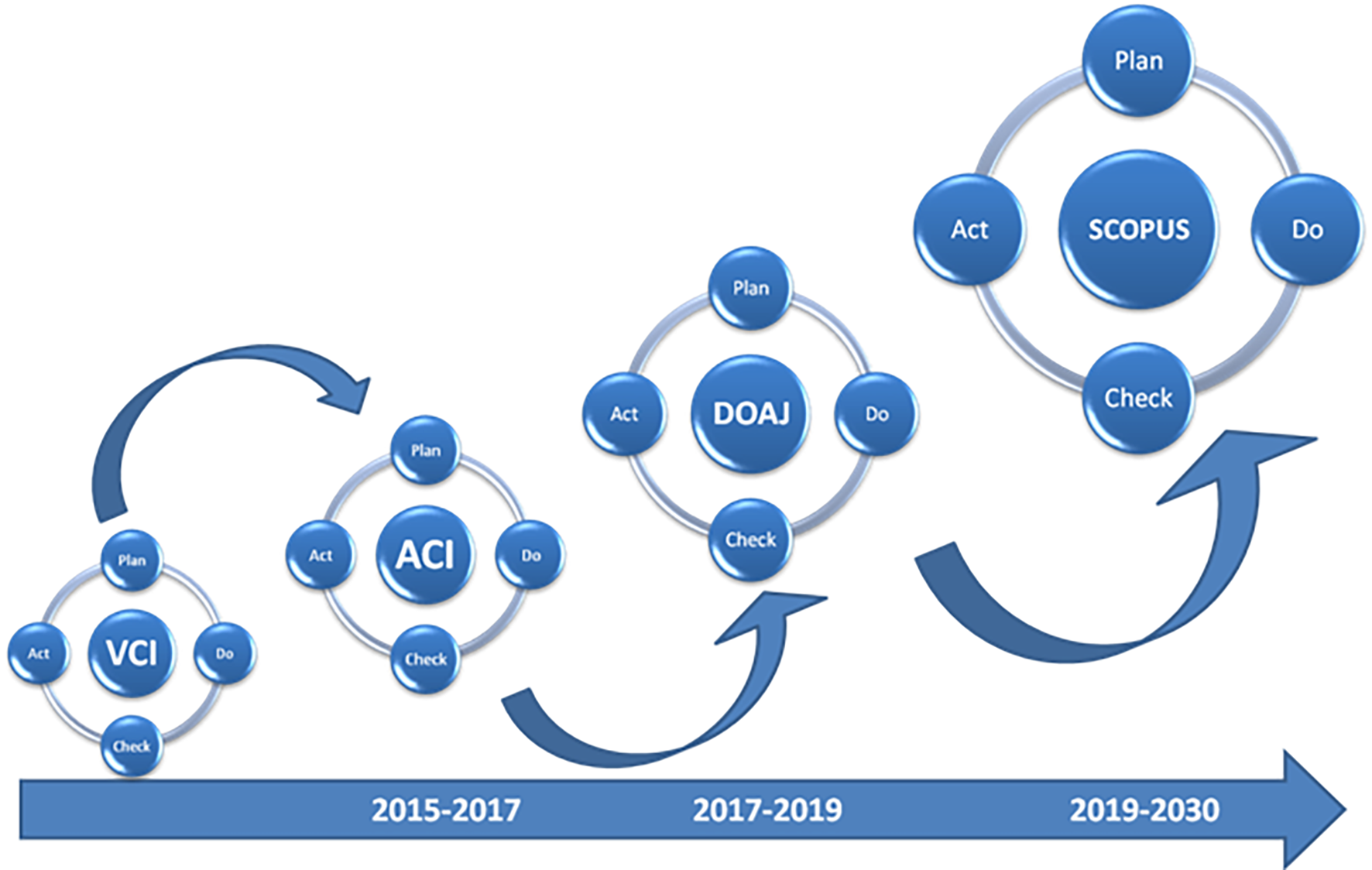 Hình 1: Lộ trình quốc tế hóa của Tạp chí KH ĐH Đà Lạt. Nguồn: Nguyễn Văn Tuấn.