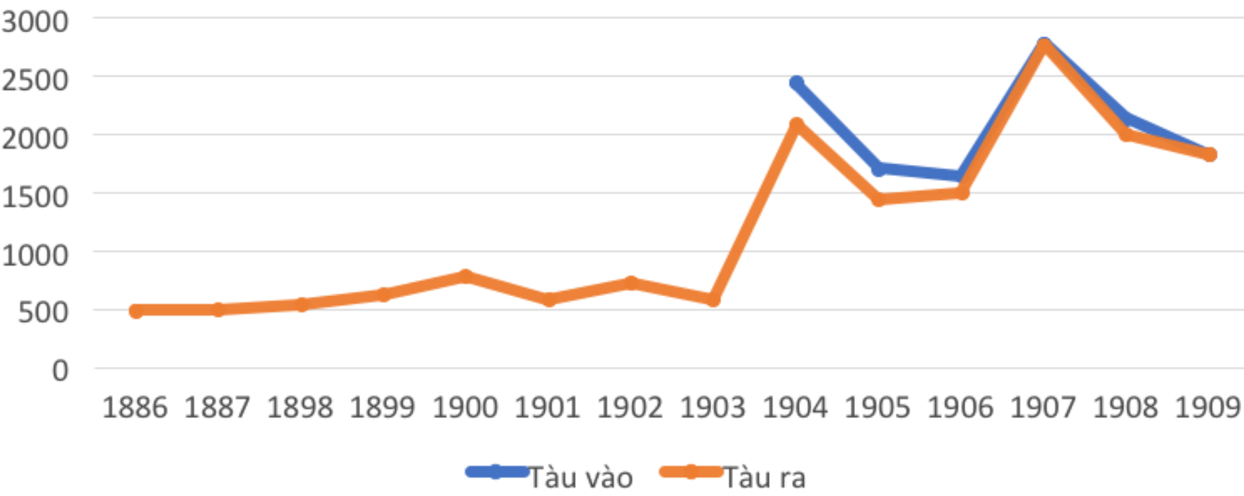 Biểu đồ 3: Số lượng tàu buôn các nước ra vào Việt Nam giai đoạn 1886-1914