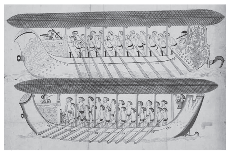 Tàu chiến Đàng Ngoài thế kỷ XVIII (bức vẽ của Samuel Baron, khoảng 1680).