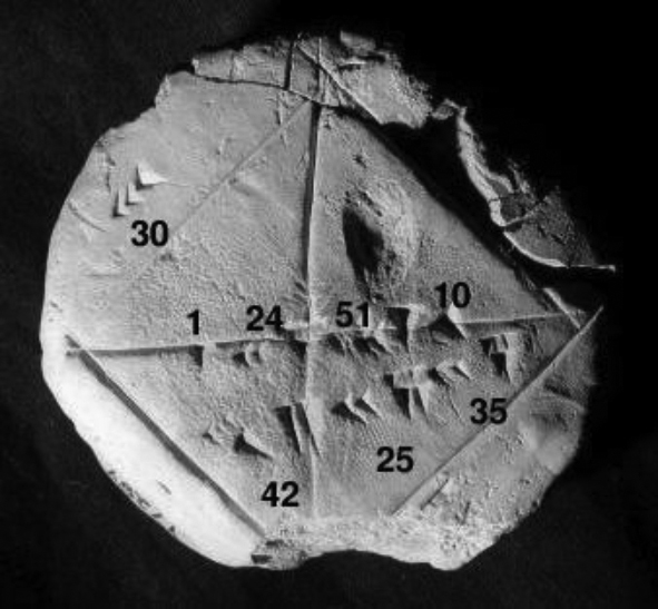 Các bảng chữ Mesopotamia: một mảnh ghi một trong các sử thi Gilgamesh (trái) và một mảnh ghi giá trị của √2 (phải).