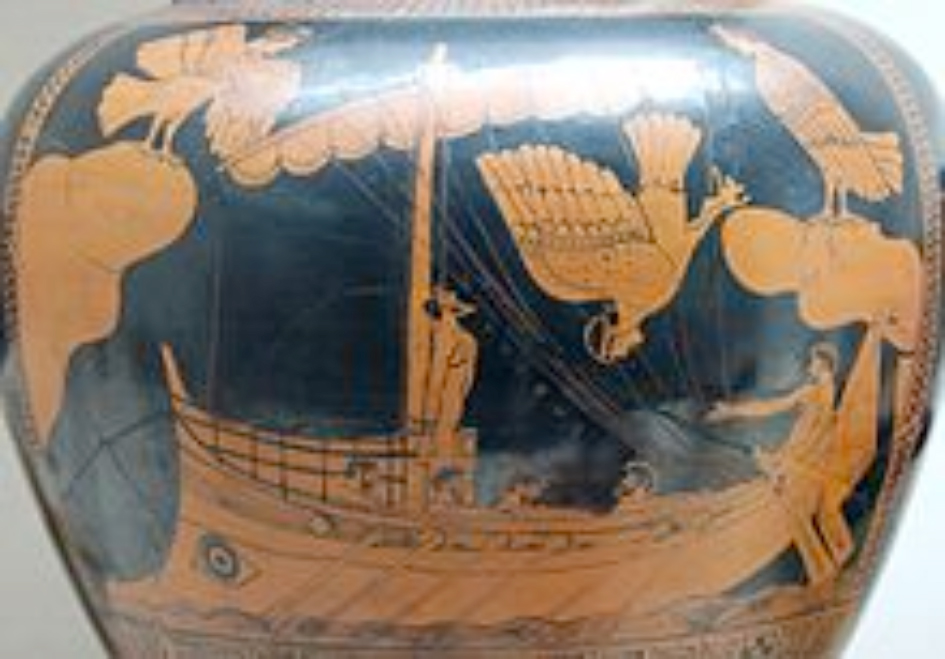 Hy Lạp cổ đại: Homer (trái), một cảnh trong Odyssey (phải), và Hesiod (dưới)