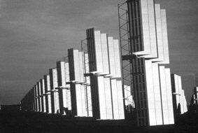 – Giải pháp năng lượng: Các khung mầu đỏ là diện tích sa mạc cần phải được phủ kín bằng các nhà máy điện-gương để có thể thoả mãn nhu cầu năng lượng điện trên toàn thế giới (Welt), Châu Âu (EU 25) và Đức (D)