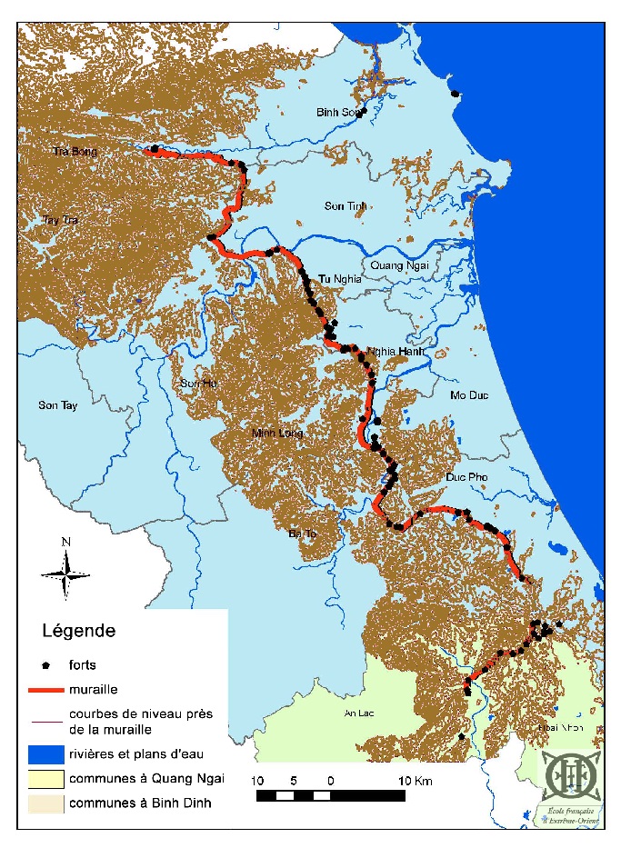 Trường Lũy ở các tỉnh Quảng Ngãi và Bình Định. Bản đồ: Steve Leisz. © EFEO.