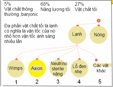2. Nhẹ hơn WIMPS nhiều có hạt axion với số lượng lớn hiện nay được cho là thành phần của vật chất tối.