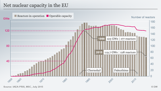 Thảm họa Chernobyl vào ngày 26/4/1986 khiến quá trình phát triển của điện hạt nhân trên thế giới nói chung và châu Âu nói riêng phải chuyển hướng. Tai nạn này là nguyên nhân dẫn đến những cuộc tranh cãi về điện hạt nhân, và làm phá sản nhiều dự án xây dựng nhà máy điện hạt nhân khác. Tuy nhiên có một thực tế là nhiều quốc gia châu Âu vẫn còn kiên trì theo đuổi điện hạt nhân và các lò phản ứng trên khắp châu Âu đang trong quá trình lão hóa. Dẫu sao người ta không thể phủ nhận rằng, một phần ba điện năng tiêu thụ trên toàn châu Âu là từ các nhà máy điện hạt nhân như một báo cáo gần đây của Cơ quan Năng lượng nguyên tử quốc tế (IAEA).
