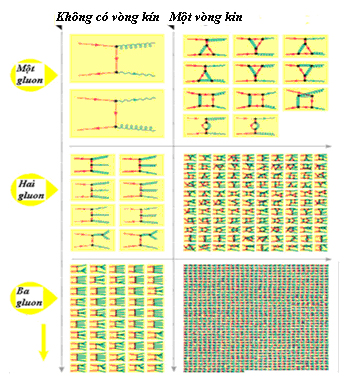 Mỗi giản đồ Feynman cung cấp cho chúng ta cái nhìn về một cung cách mà các hạt có thể tương tác với nhau. Một tương tác quark-quark có thể tạo nên nhiều gluon hoặc nhiều vòng kín (loop) các hạt ảo và vì thế số giản đồ Feynman tương ứng trở nên nhiều vô kể. Việc tính toán trở nên không kiểm soát được. (Xem hình 3).