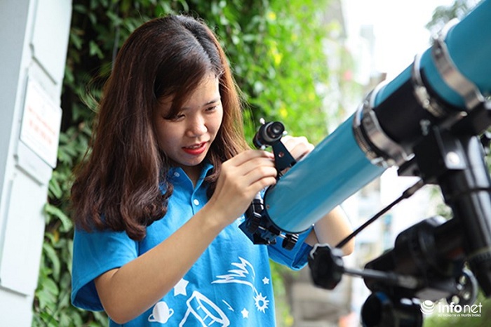 Một thành viên trong hội Thiên văn nghiệp dư Hà Nội đang học sử dụng kính thiên văn. Nguồn ảnh: Infonet.vn.