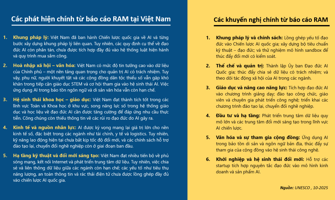 Báo cáo RAM do nhóm chuyên gia liên ngành từ các trưởng đại học hàng đầu trong nước thực hiện từ tháng 8/2024 đến tháng 8/2025, với sự điều phối của Bộ Khoa học và Công nghệ, hỗ trợ kỹ thuật từ UNESCO và tài trợ của Liên minh Châu Âu.
