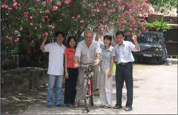 ![]() Pierre trên chiếc xe đạp tự chế lắp |