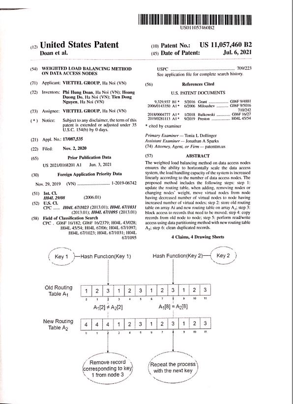 Sáng chế Phương pháp cân bằng tải có trọng số trên các điểm truy cập dữ liệu.