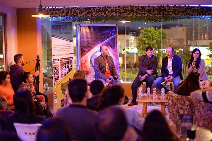 Một buổi cà phê khoa học ở Manizales, Colombia, với chủ đề về công nghệ sinh học có thể hỗ trợ sự lớn mạnh của vùng trồng cà phê của địa phương như thế nào. Nguồn: BIOS Colombia