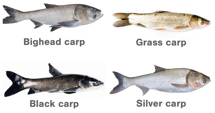 Hình ảnh một số giống cá (Cá mè hoa, cá trắm cỏ, cá trắm đen, cá mè trắng). Chúng đã trở thành “cơn ác mộng kinh hoàng” đối với người dân Mỹ và Canada. Đến nỗi mà các nhà chức trách phải mất ăn mất ngủ đi tìm giải pháp để ngăn chặn sự quấy phá những con sông, hồ lớn của họ. Ảnh: afamily.vn.